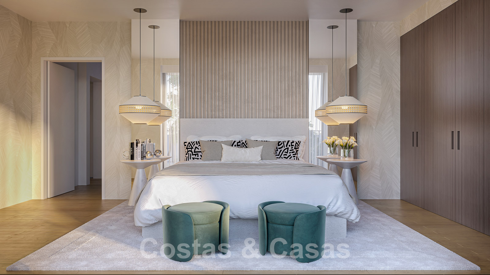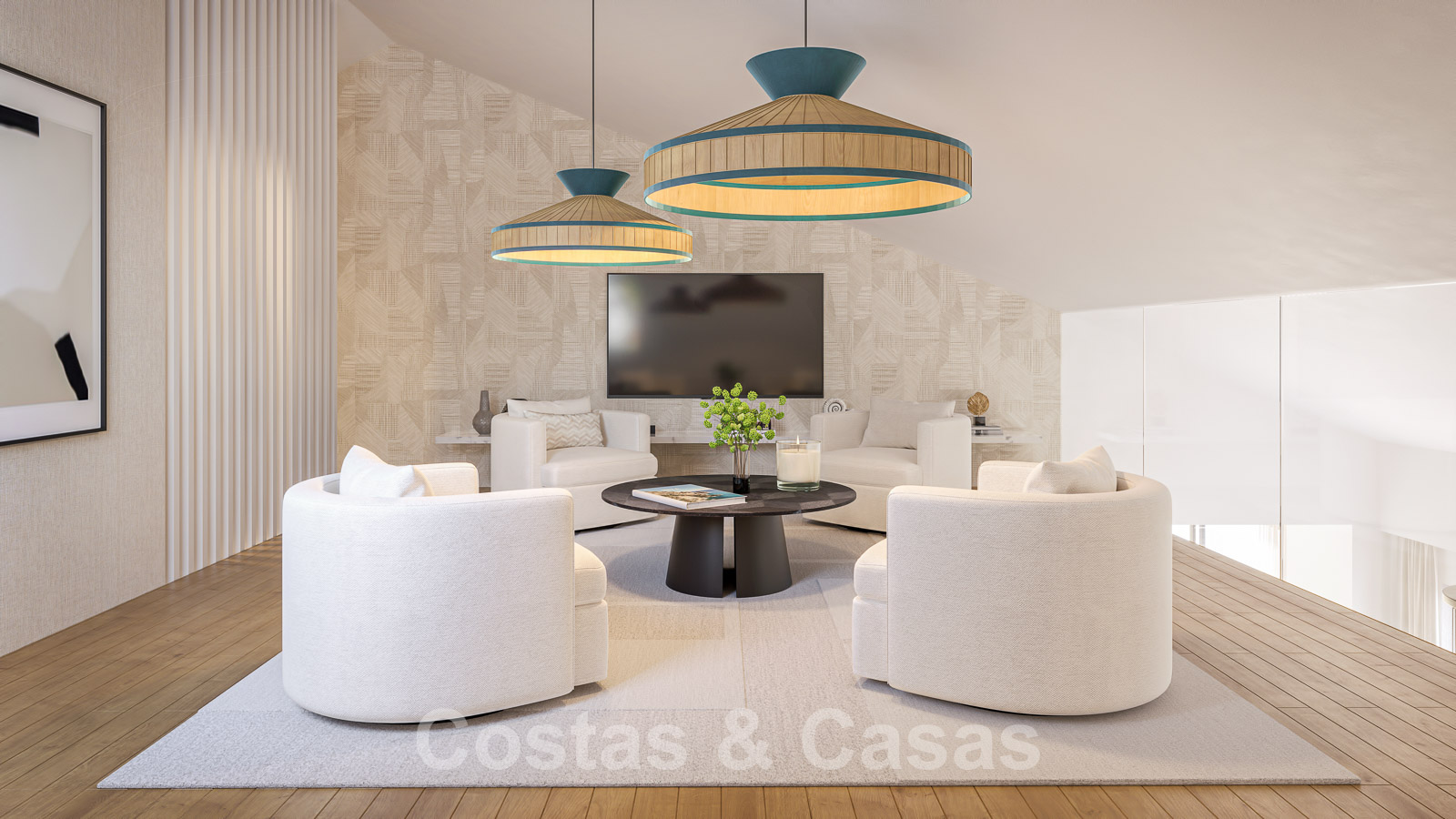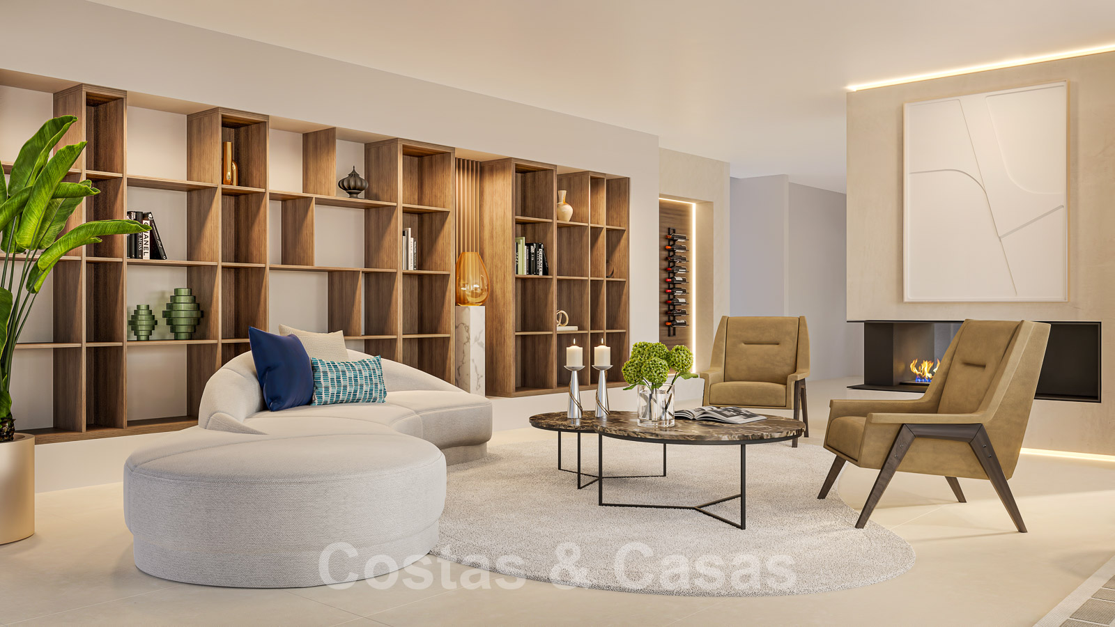 Nueva villa de lujo de atractivo estilo arquitectónico mediterráneo en venta con vistas al campo de golf en el corazón del valle del golf de Nueva Andalucía