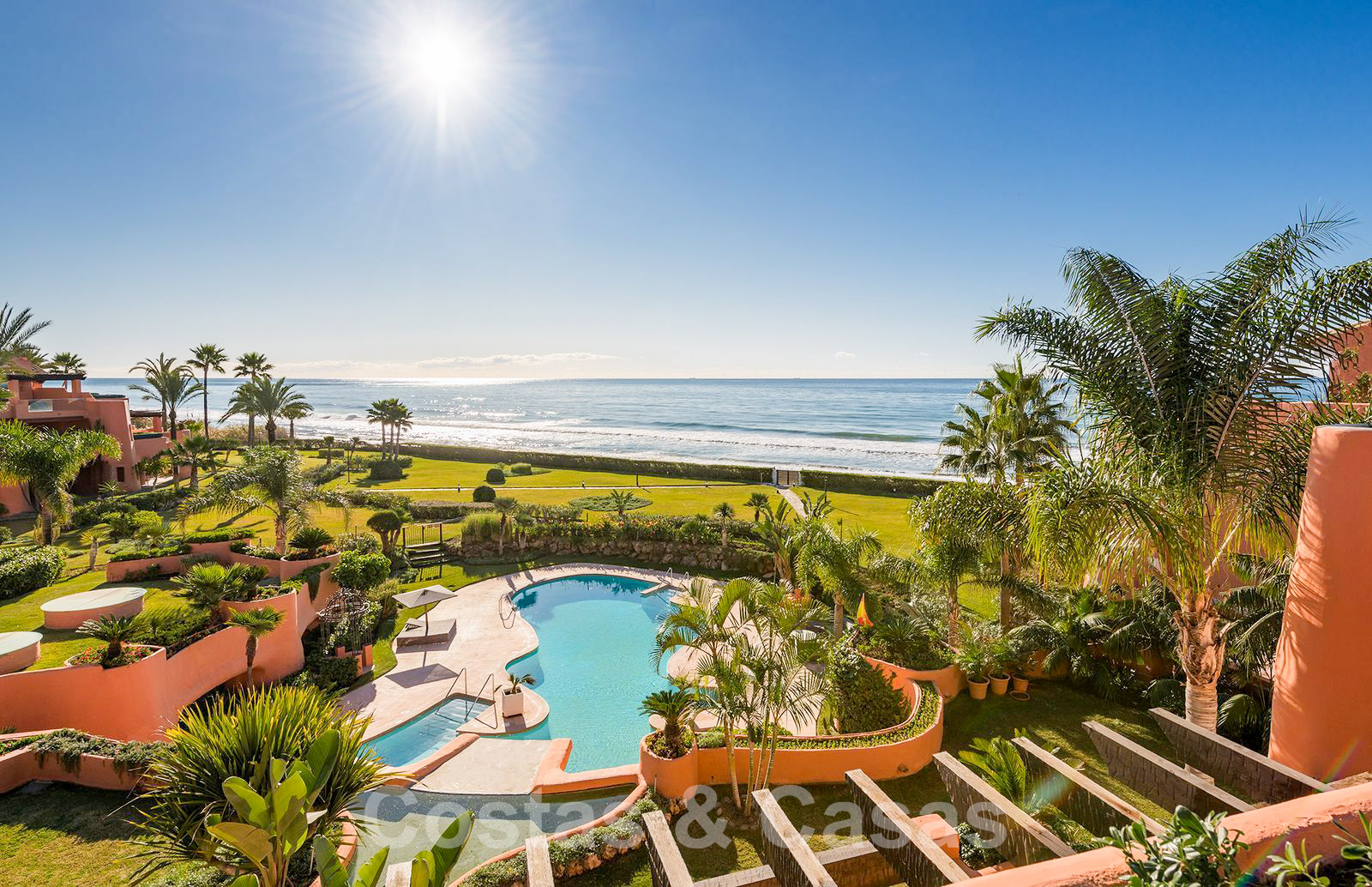 Prestigioso ático reformado en primera línea de playa en venta con vistas panorámicas al mar en Marbella Este