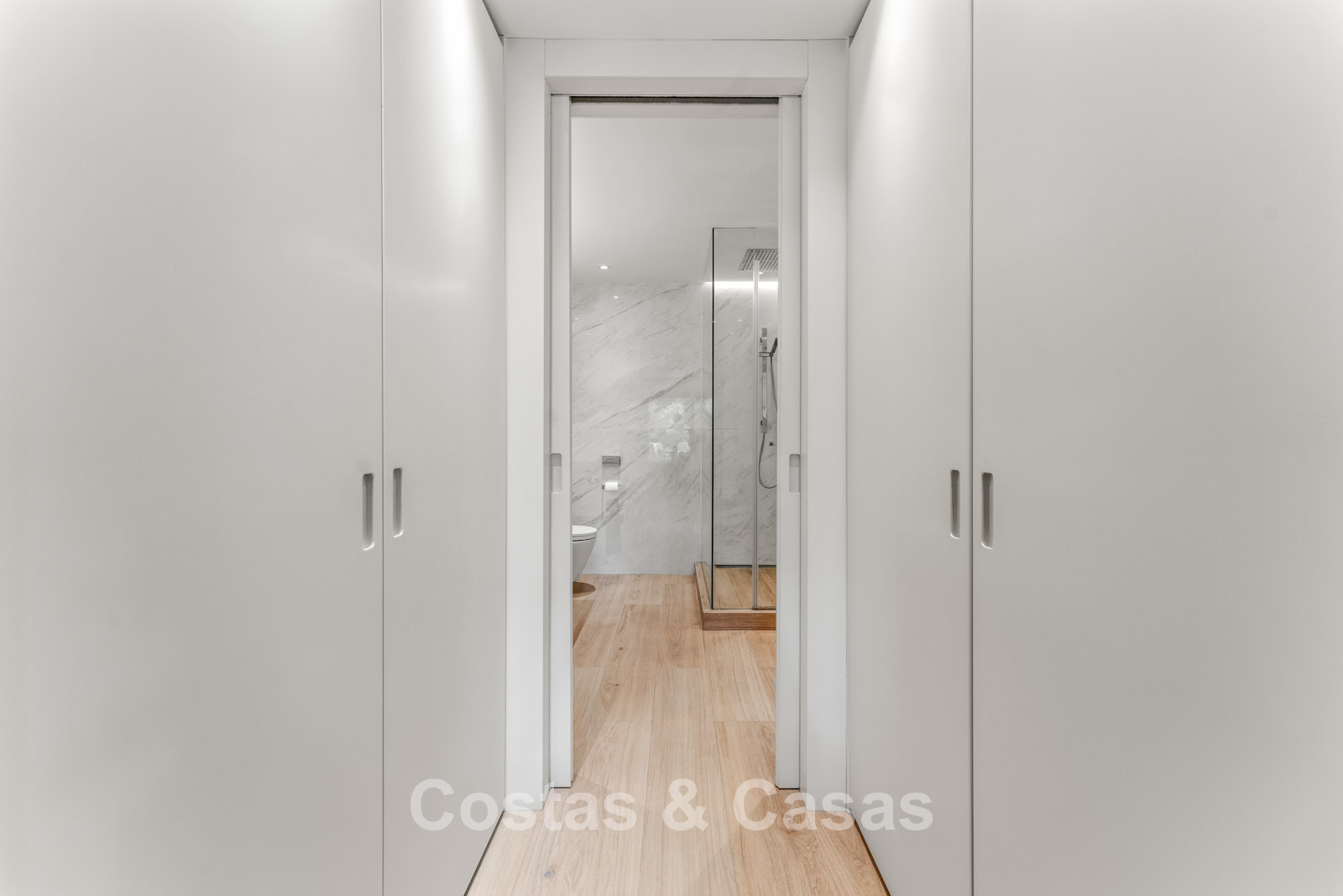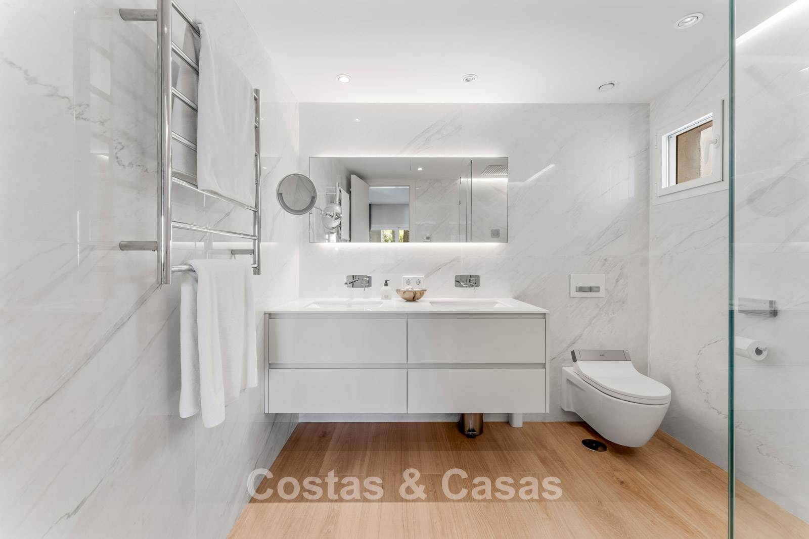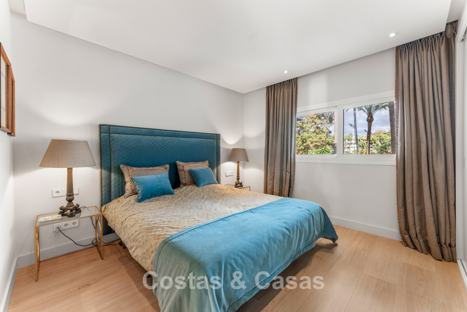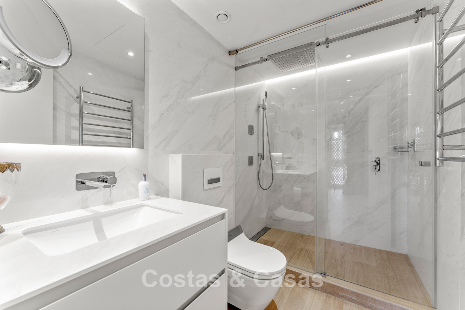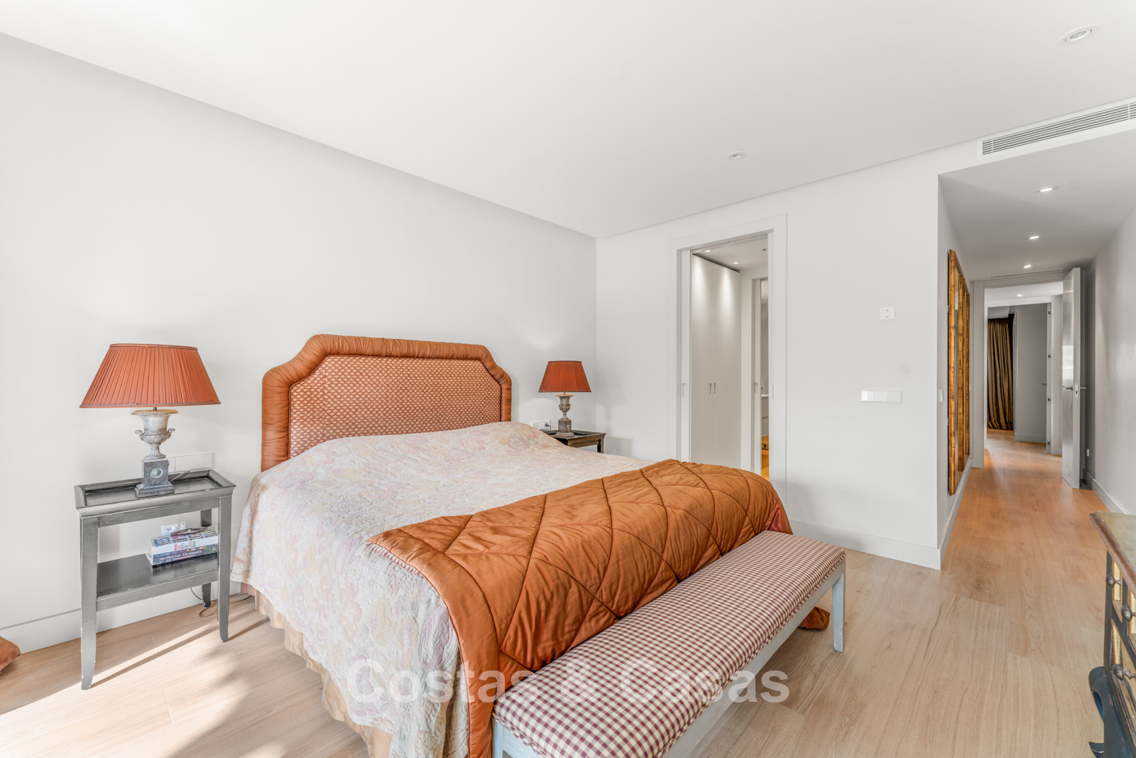 Apartamento de alta gama en el complejo de playa Marina de Puente Romano. Con materiales de alta calidad. El interior irradia elegancia moderna y una armoniosa combinación de tonos claros y naturales que crean un ambiente cálido y acogedor. Una amplia y acogedora terraza cubierta, perfecta para comer al aire libre y relajarse. Las altas ventanas correderas del salón proporcionan luminosidad y acceso al exterior. Espacio diáfano. Cocina-comedor de concepto abierto, totalmente equipada con electrodomésticos Miele. 3 amplios dormitorios con 3 baños. El dormitorio principal tiene acceso directo a la terraza. Suelo de parquet cerámico. Trastero. Garaje privado.