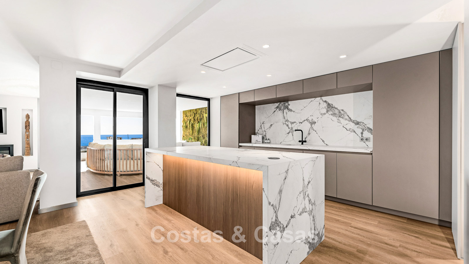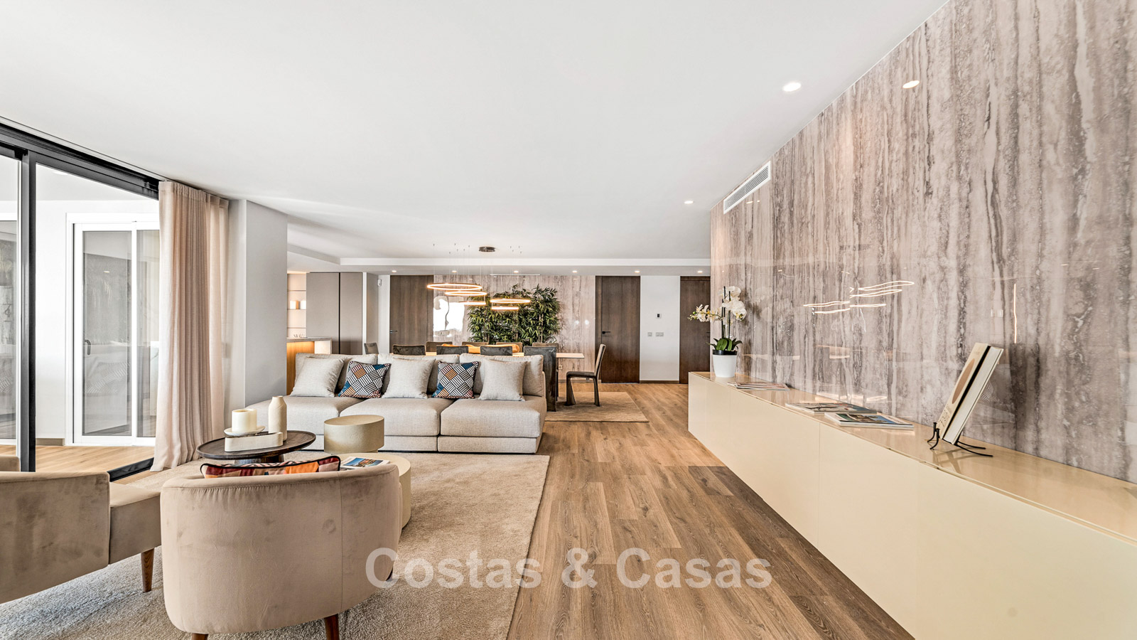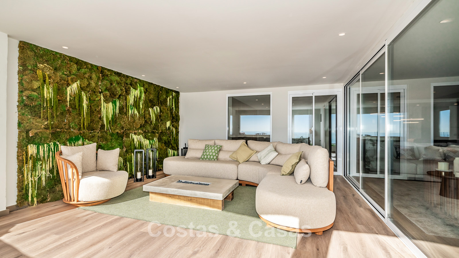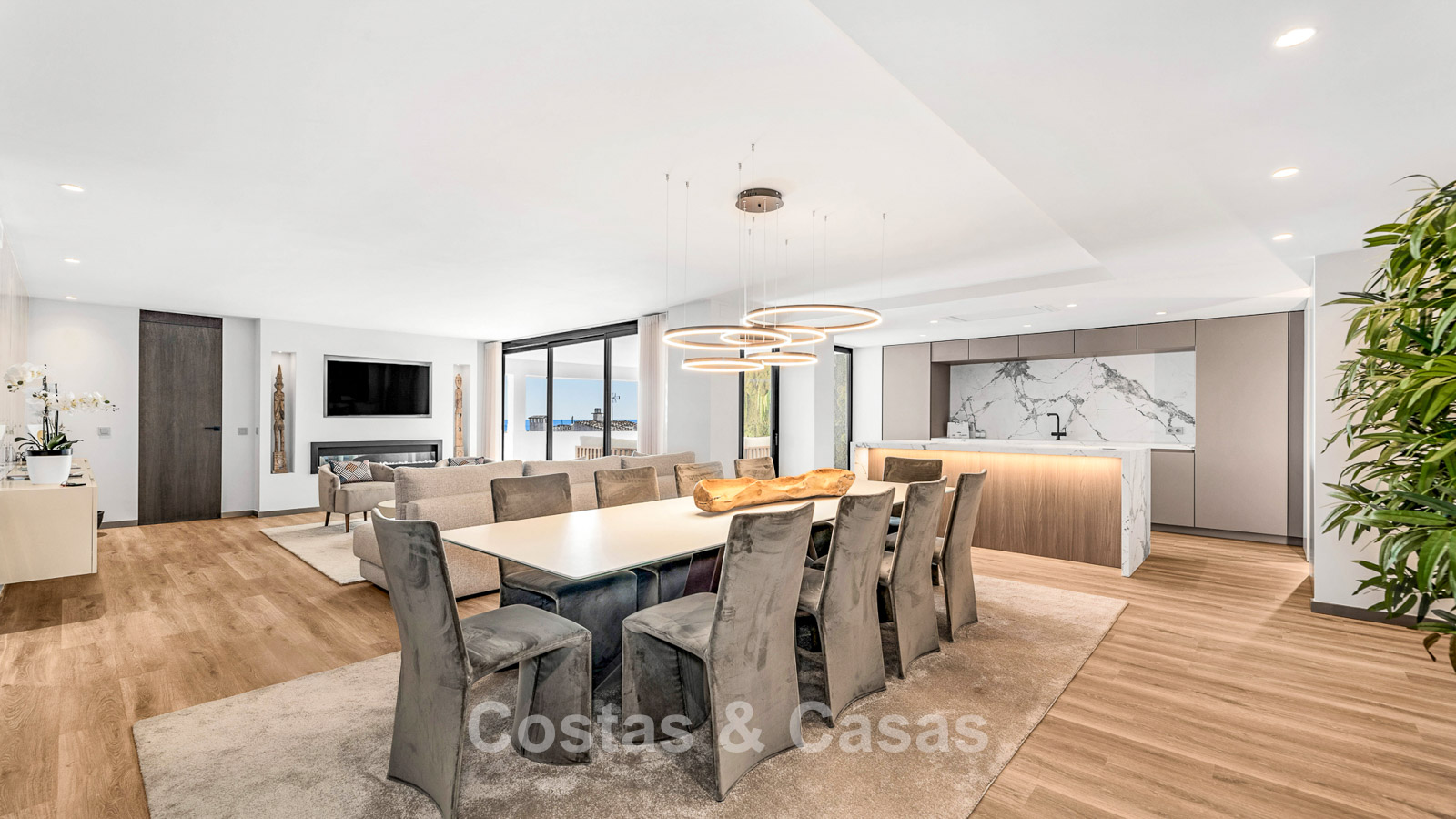 Apartamento espacioso y muy luminoso. Materiales de primera calidad. Orientación sur/norte. Vistas al mar y a la montaña. Acogedora terraza cubierta, amueblada con un salón alrededor de una hoguera, ideal para disfrutar de tardes relajantes. Las grandes ventanas correderas maximizan la luz natural y se abren al exterior. Diseño moderno de planta abierta. Espacioso salón con sala de TV y comedor integrado. La moderna cocina con isla de cocción fue diseñada pensando en la funcionalidad. 5 dormitorios, 4 baños y un aseo. Lavadero. Suelos de madera. Plaza de aparcamiento subterráneo.