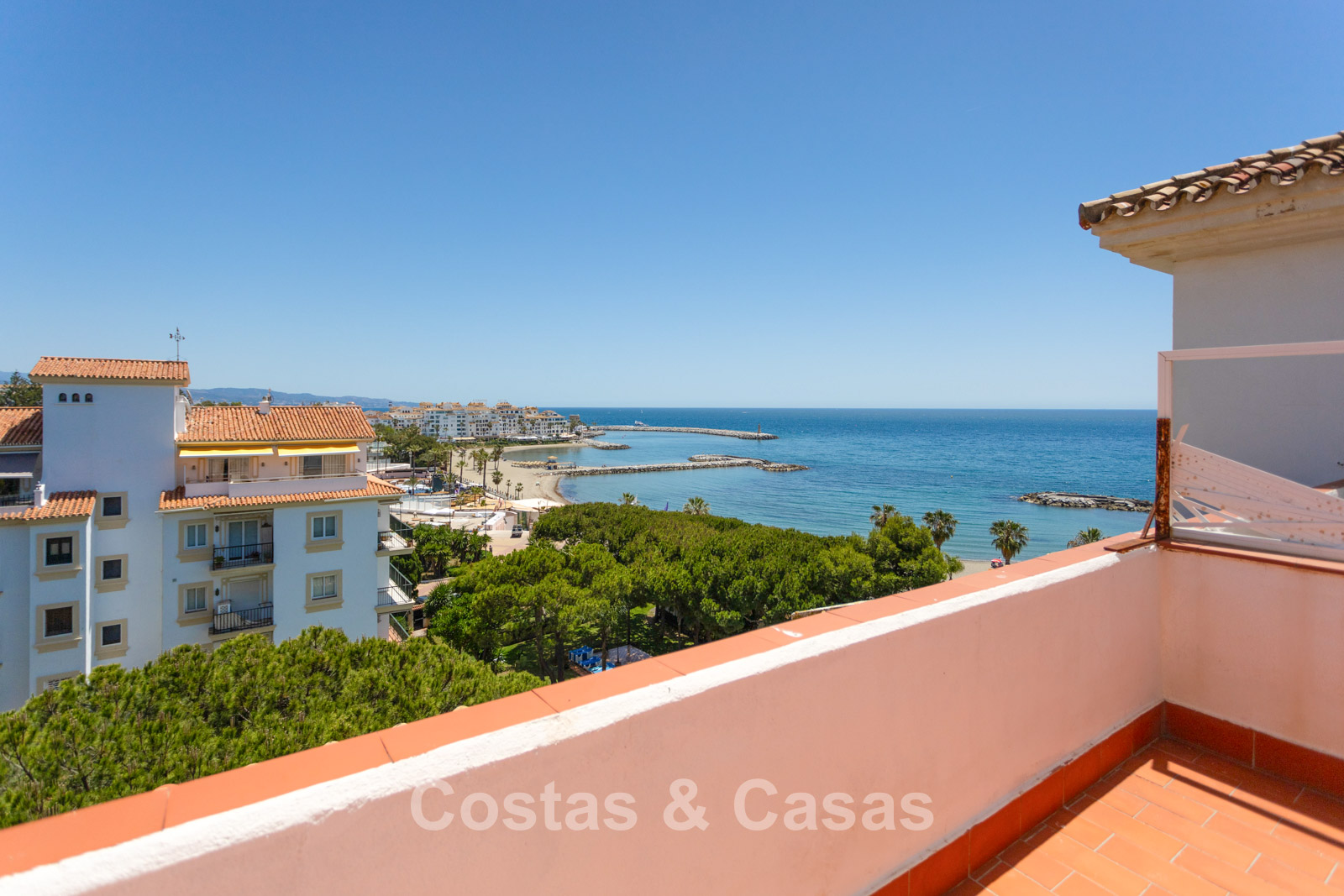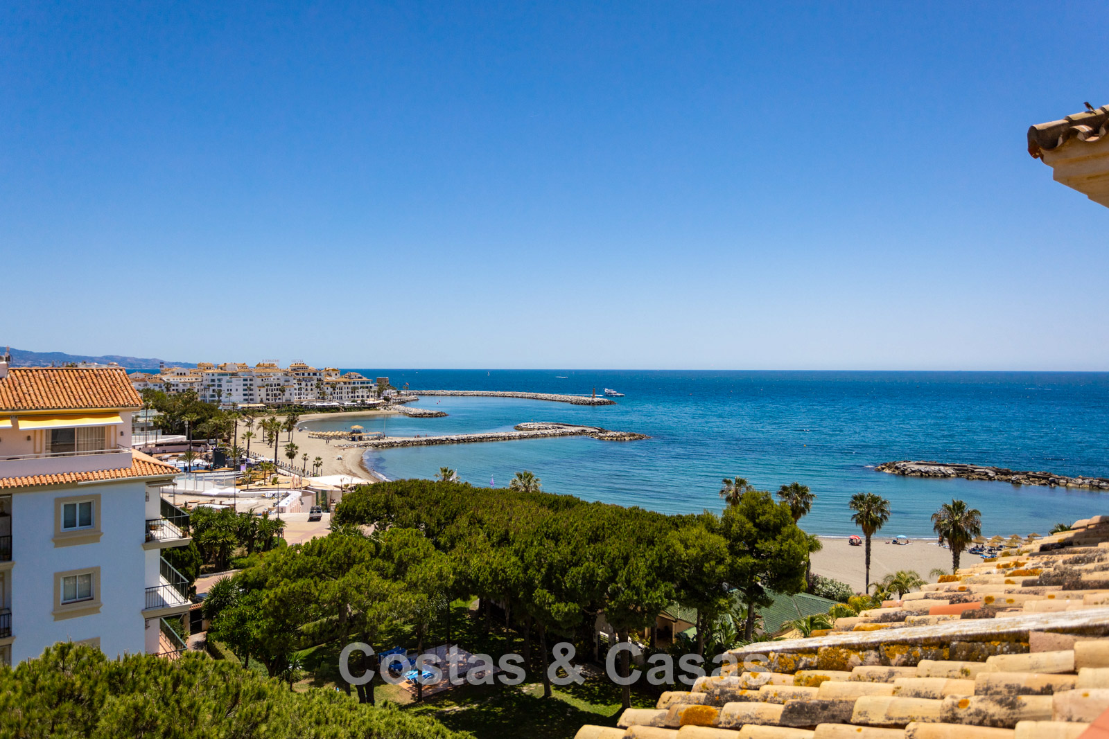 Impresionantes vistas a la playa, el puerto deportivo y la costa.