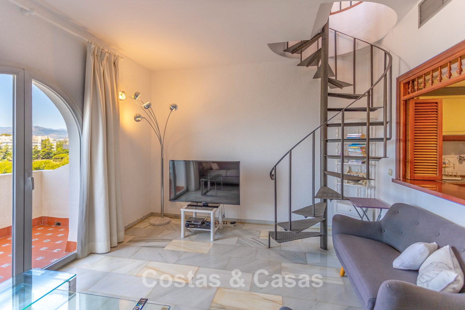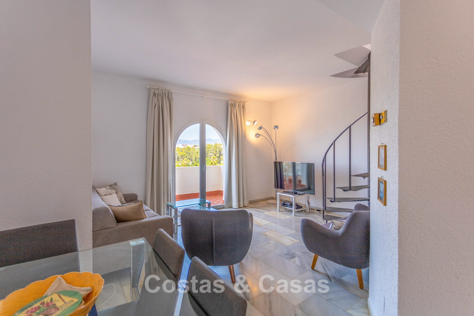Ático dúplex en la 5.ª planta. El complejo está diseñado con una arquitectura típica andaluza. Orientación suroeste. Preciosas vistas panorámicas a la playa, el puerto deportivo y la costa. Este proyecto de reforma es una oportunidad ideal para crear una vivienda contemporánea o invertir en una propiedad de alquiler con alta demanda. Una terraza en el lado oeste es perfecta para disfrutar del sol de la tarde y contemplar la inmensidad del mar. 3 dormitorios, 3 baños, dos de ellos en suite. La planta superior está dedicada íntegramente a la suite principal, con baño propio, vestidor y terraza privada con vistas espectaculares. Plaza de aparcamiento interior.