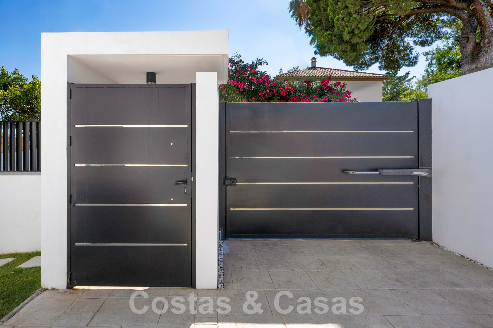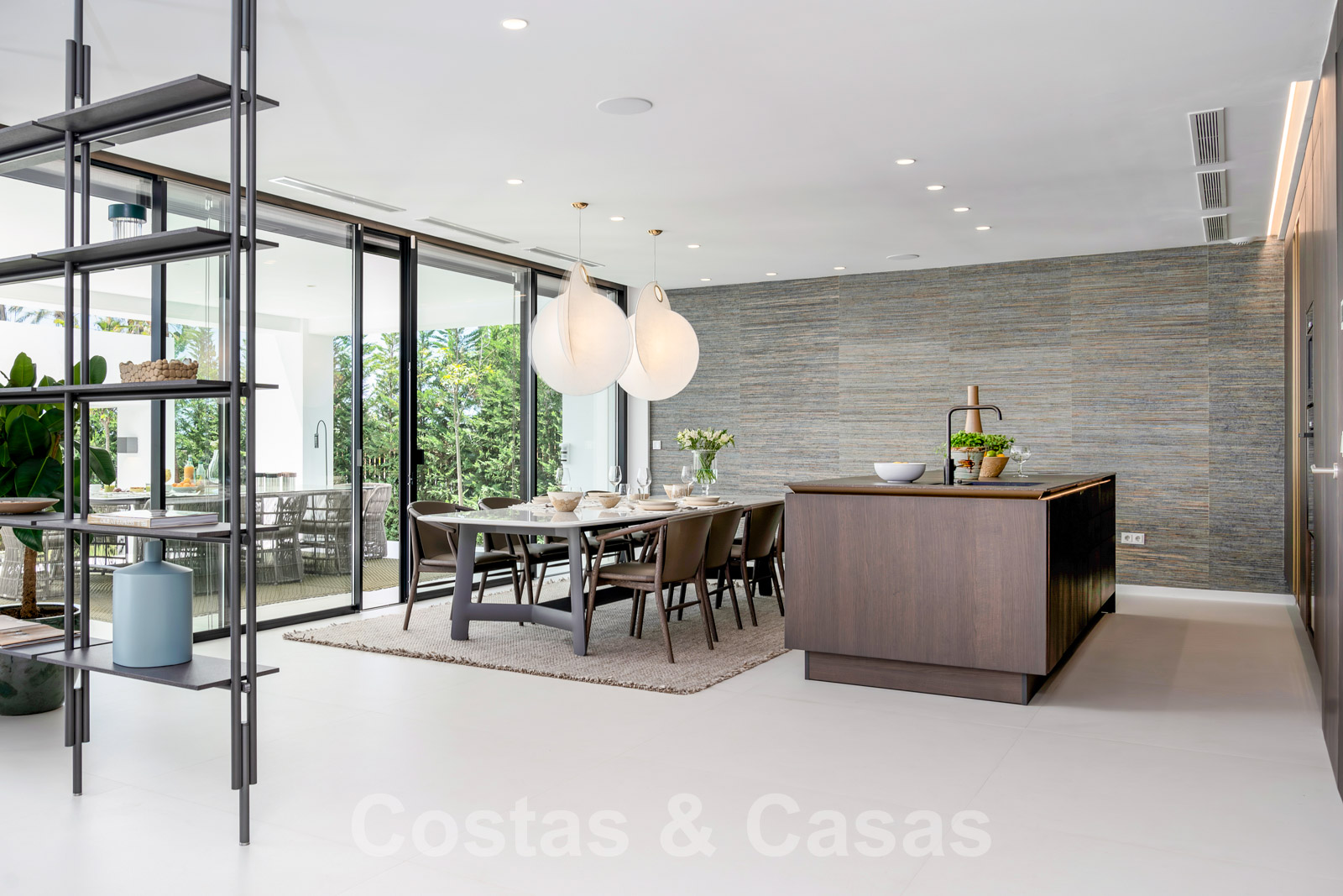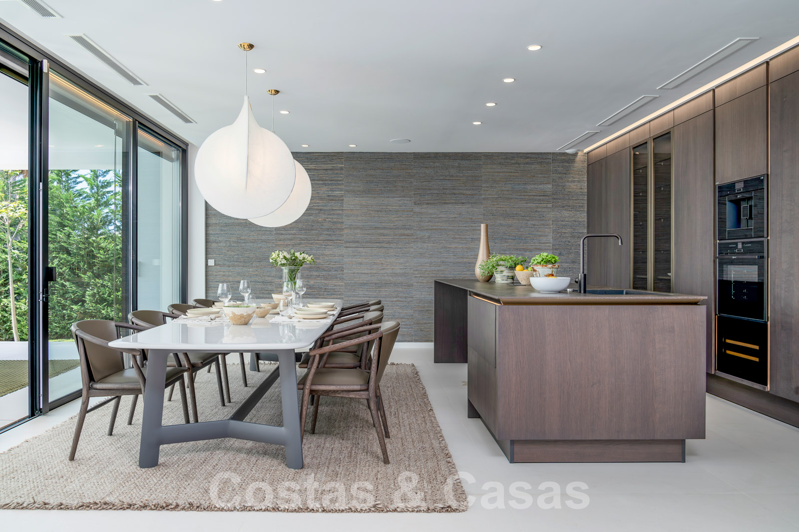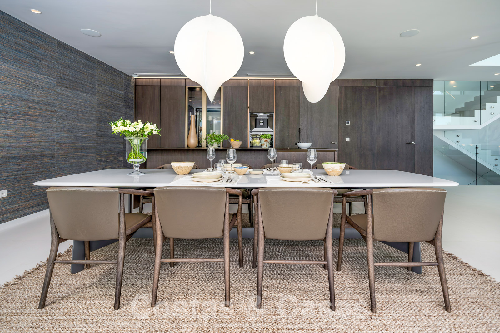 Villa independiente de lujo en un estilo arquitectónico contemporáneo y moderno. Construida con materiales de alta calidad y acabados refinados. Interior elegante y contemporáneo con un ambiente cálido. Interior muy luminoso con distribución abierta. El salón tiene un techo de doble altura con mucha luz. Cocina de diseño abierta y totalmente equipada con isla central. Comedor integrado. Las ventanas correderas de suelo a techo y de toda la villa proporcionan mucha luz natural. La planta inferior de la villa también goza de luz natural y está amueblada con una segunda sala de estar y dormitorios de invitados. Garaje para 2 coches. Aparcamiento adicional dentro de la propiedad vallada.