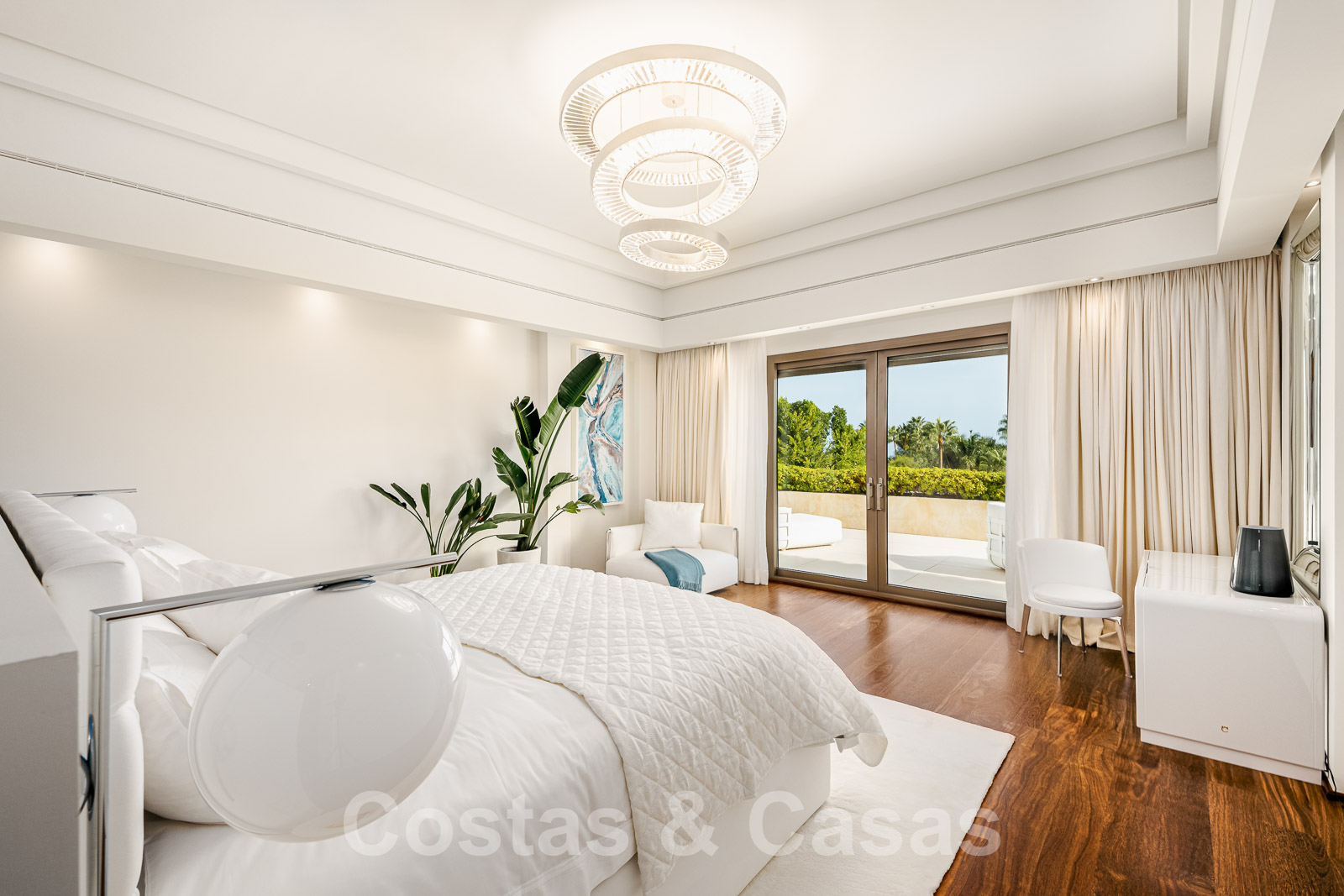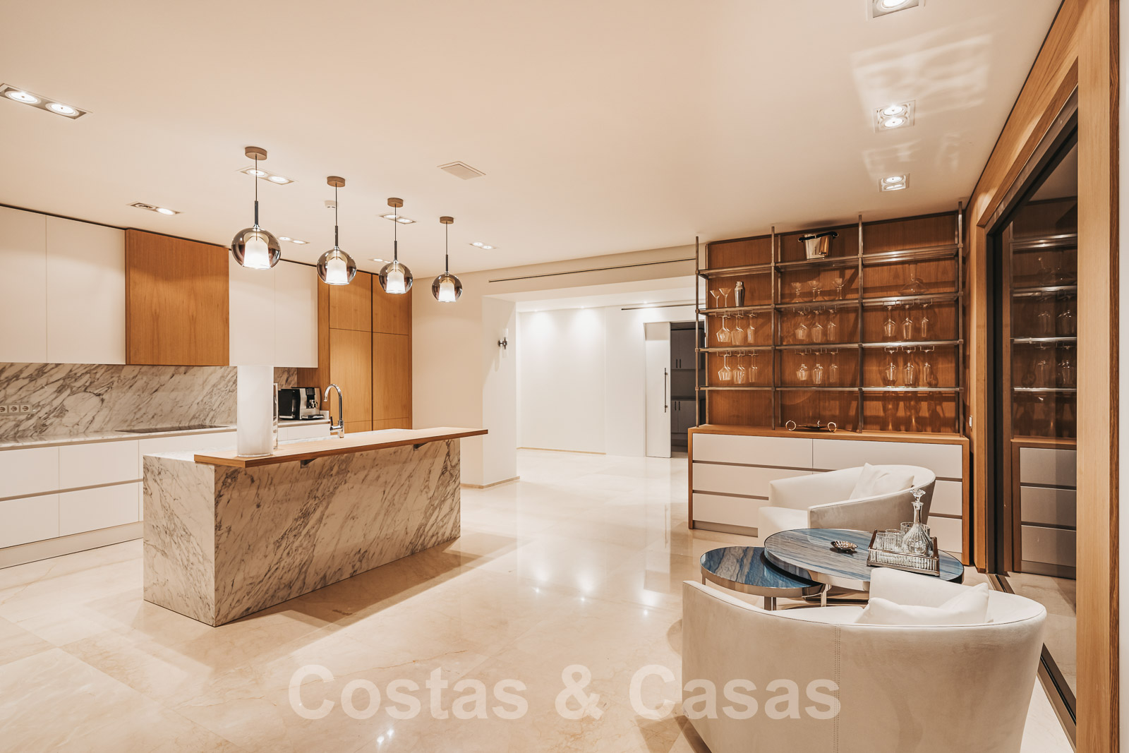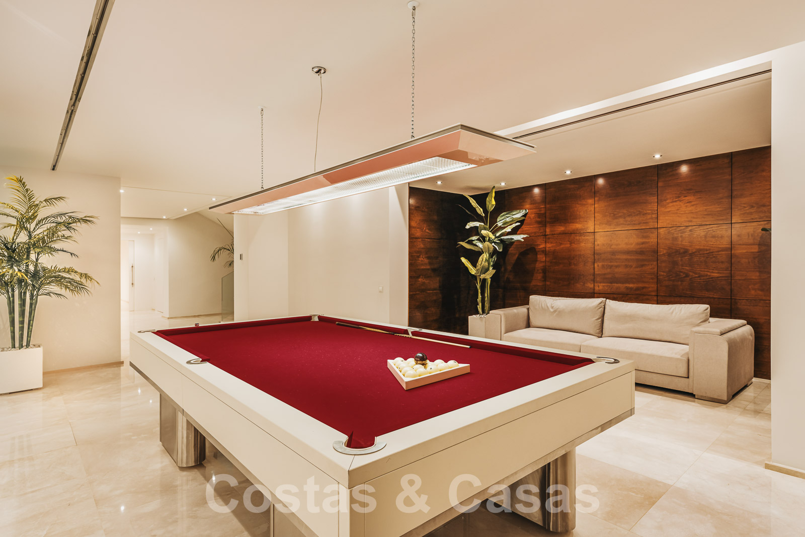 Amplia parcela de 4.980m² en la falda de la pintoresca sierra de La Concha. Orientación sur. Paisajismo de alta calidad con plantas mediterráneas. Diseñada en armonía con la naturaleza circundante. Una sublime piscina con terraza adyacente semicubierta con tumbonas. Gimnasio exterior cubierto. Terrazas cubiertas que ofrecen espacio para comedores y salones al aire libre. Completamente renovada al más alto nivel con gran atención al más alto nivel de acabado. La espectacular villa de 7 dormitorios se distribuye en 3 niveles conectados por un ascensor. Las altas ventanas correderas y los techos altos proporcionan mucha luz natural y ventilación adicional. En la planta baja, un hall de entrada le da la bienvenida, conectando con el majestuoso salón de doble altura. Al lado hay una habitación, libremente configurable como biblioteca o despacho. Una cocina altamente equipada con refrigerador de vino e isla central para sentarse. Una despensa. Comedor formal y luminoso con techo elevado. Un total de 7 dormitorios, 8 cuartos de baño, 2 aseos de invitados. El dormitorio principal dispone de 2 vestidores privados y 2 cuartos de baño. Además, la suite principal ofrece acceso a una terraza privada. En la planta inferior, se encuentran las zonas de entretenimiento y servicio. Incluye una: