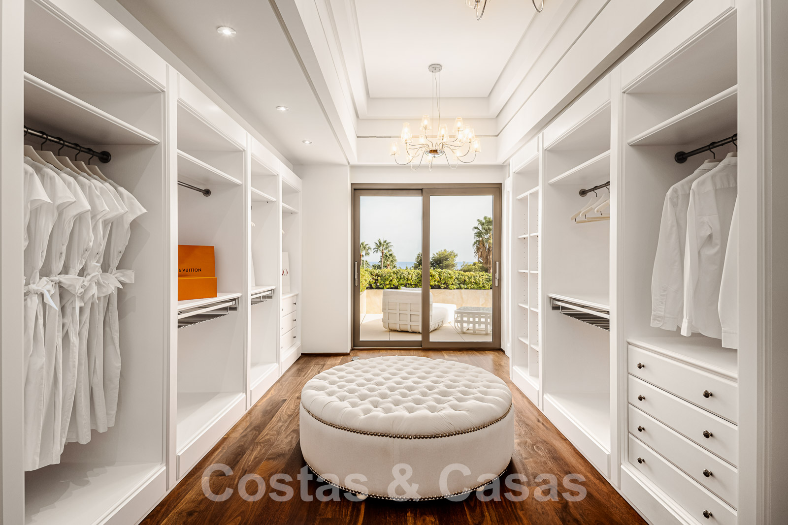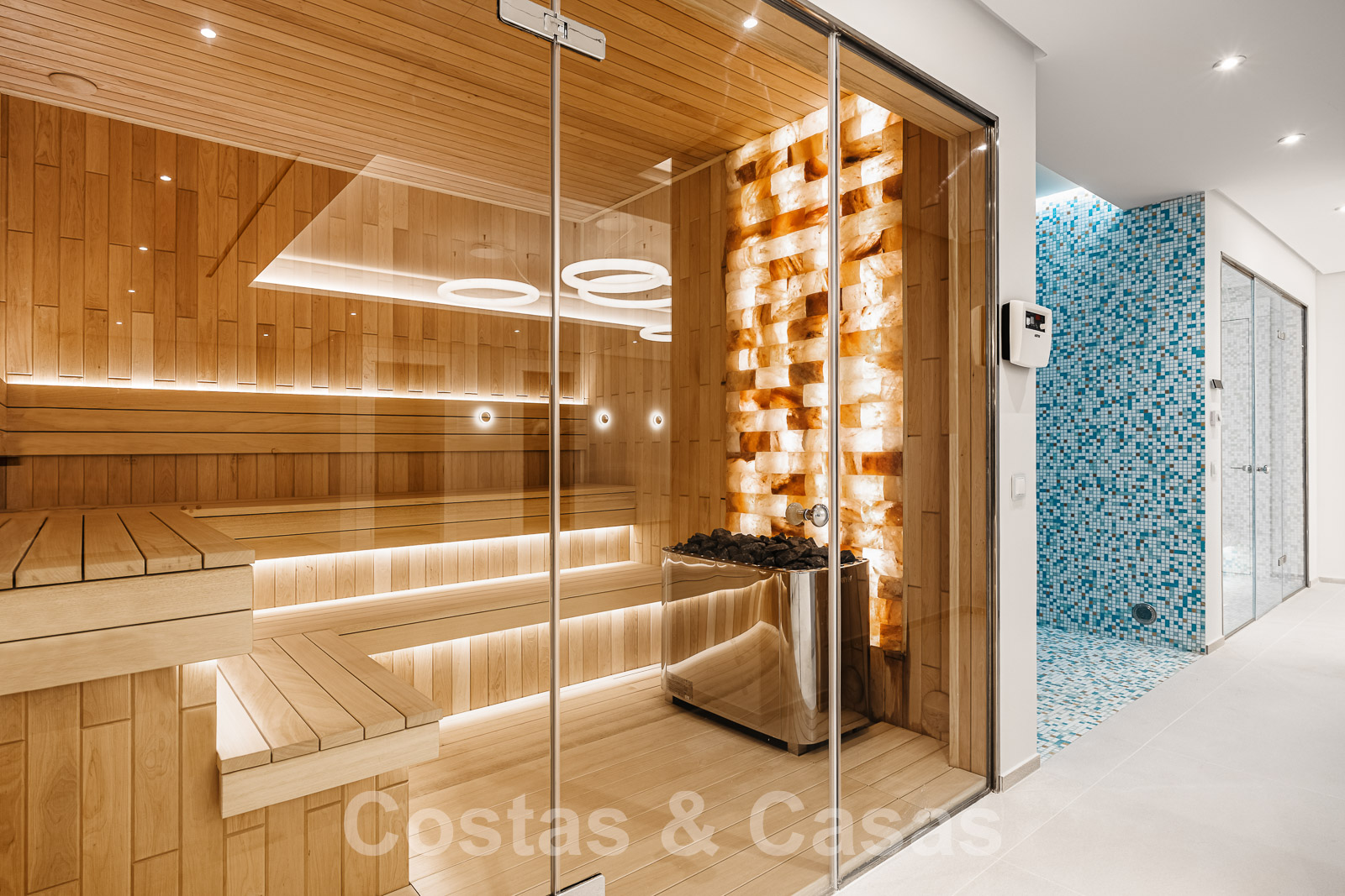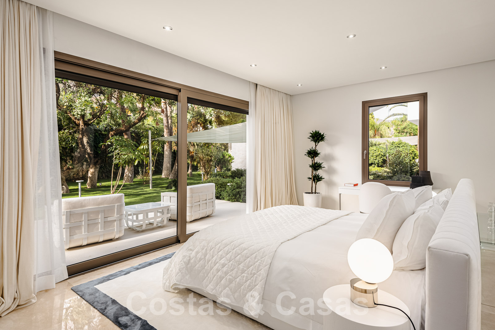 Amplia parcela de 4.980m² en la falda de la pintoresca sierra de La Concha. Orientación sur. Paisajismo de alta calidad con plantas mediterráneas. Diseñada en armonía con la naturaleza circundante. Una sublime piscina con terraza adyacente semicubierta con tumbonas. Gimnasio exterior cubierto. Terrazas cubiertas que ofrecen espacio para comedores y salones al aire libre. Completamente renovada al más alto nivel con gran atención al más alto nivel de acabado. La espectacular villa de 7 dormitorios se distribuye en 3 niveles conectados por un ascensor. Las altas ventanas correderas y los techos altos proporcionan mucha luz natural y ventilación adicional. En la planta baja, un hall de entrada le da la bienvenida, conectando con el majestuoso salón de doble altura. Al lado hay una habitación, libremente configurable como biblioteca o despacho. Una cocina altamente equipada con refrigerador de vino e isla central para sentarse. Una despensa. Comedor formal y luminoso con techo elevado. Un total de 7 dormitorios, 8 cuartos de baño, 2 aseos de invitados. El dormitorio principal dispone de 2 vestidores privados y 2 cuartos de baño. Además, la suite principal ofrece acceso a una terraza privada. En la planta inferior, se encuentran las zonas de entretenimiento y servicio. Incluye una: