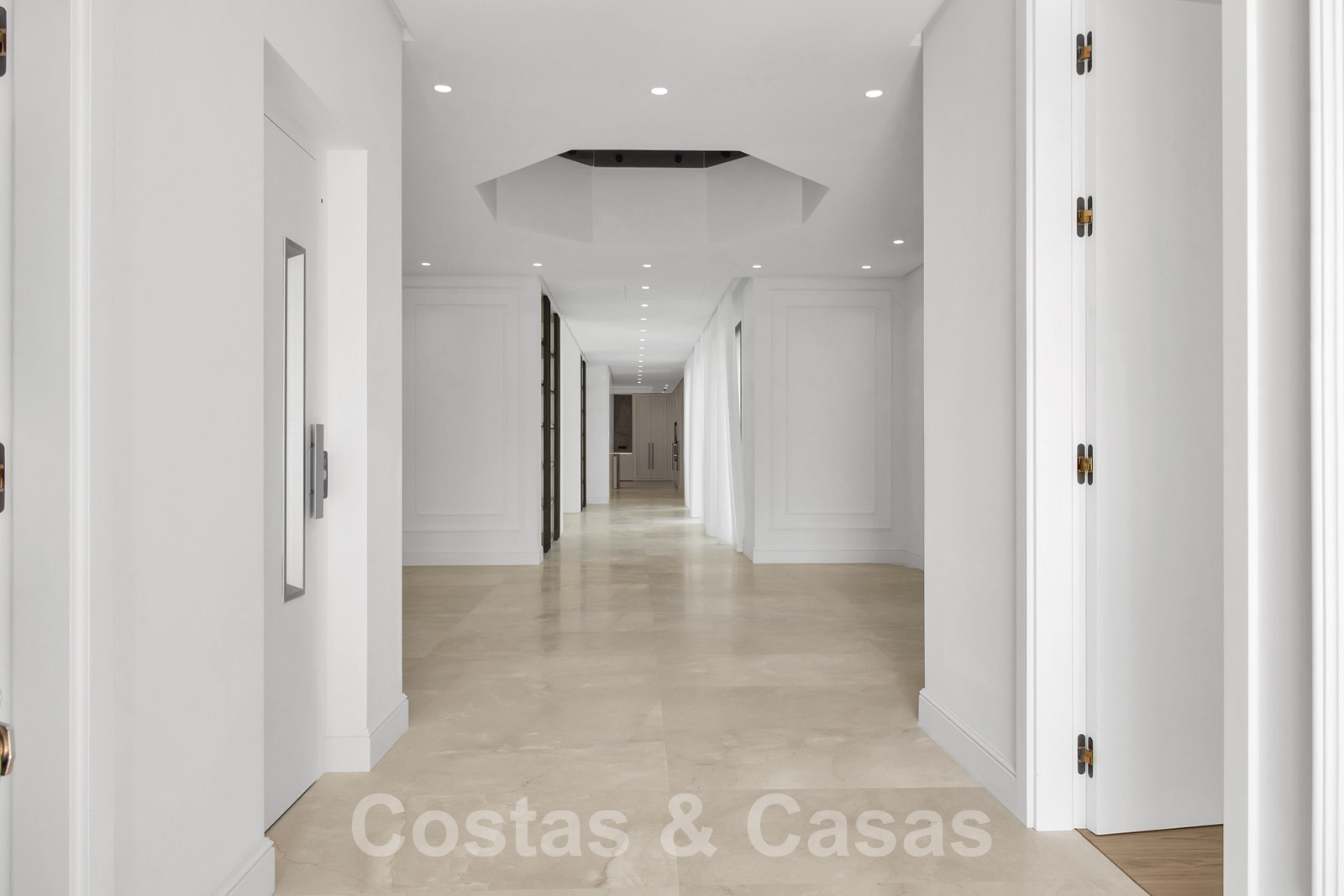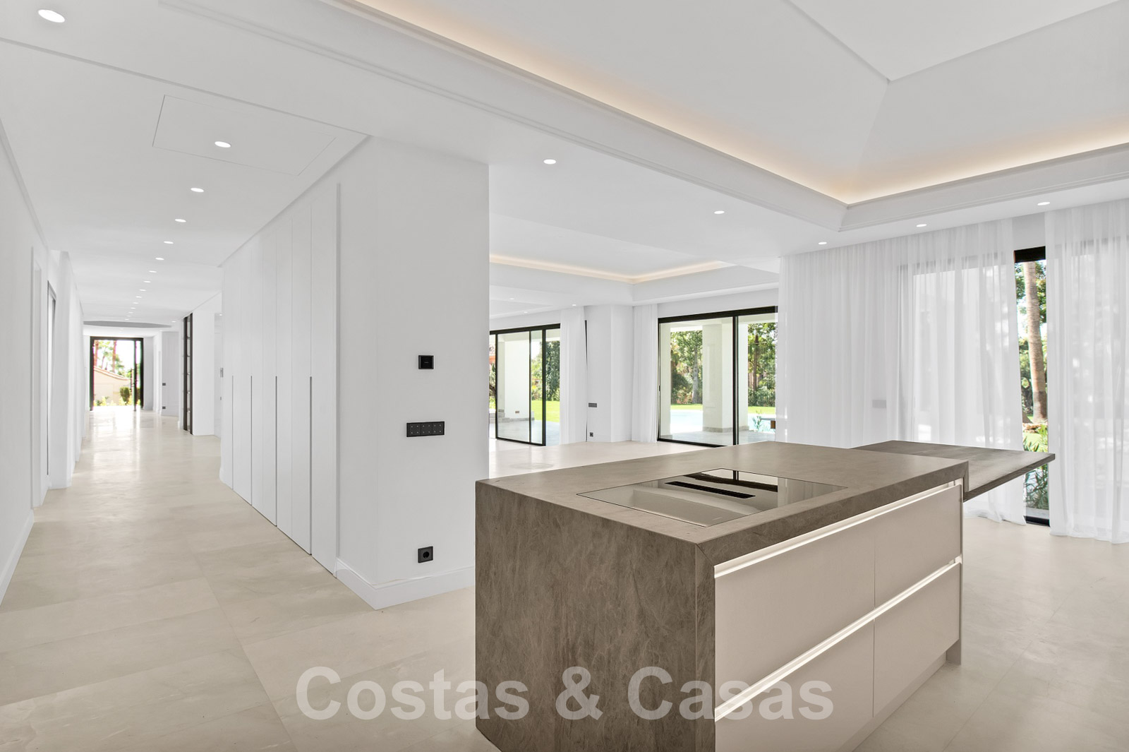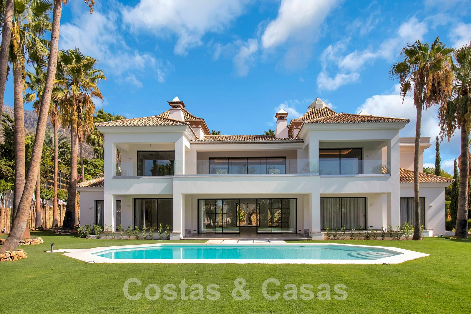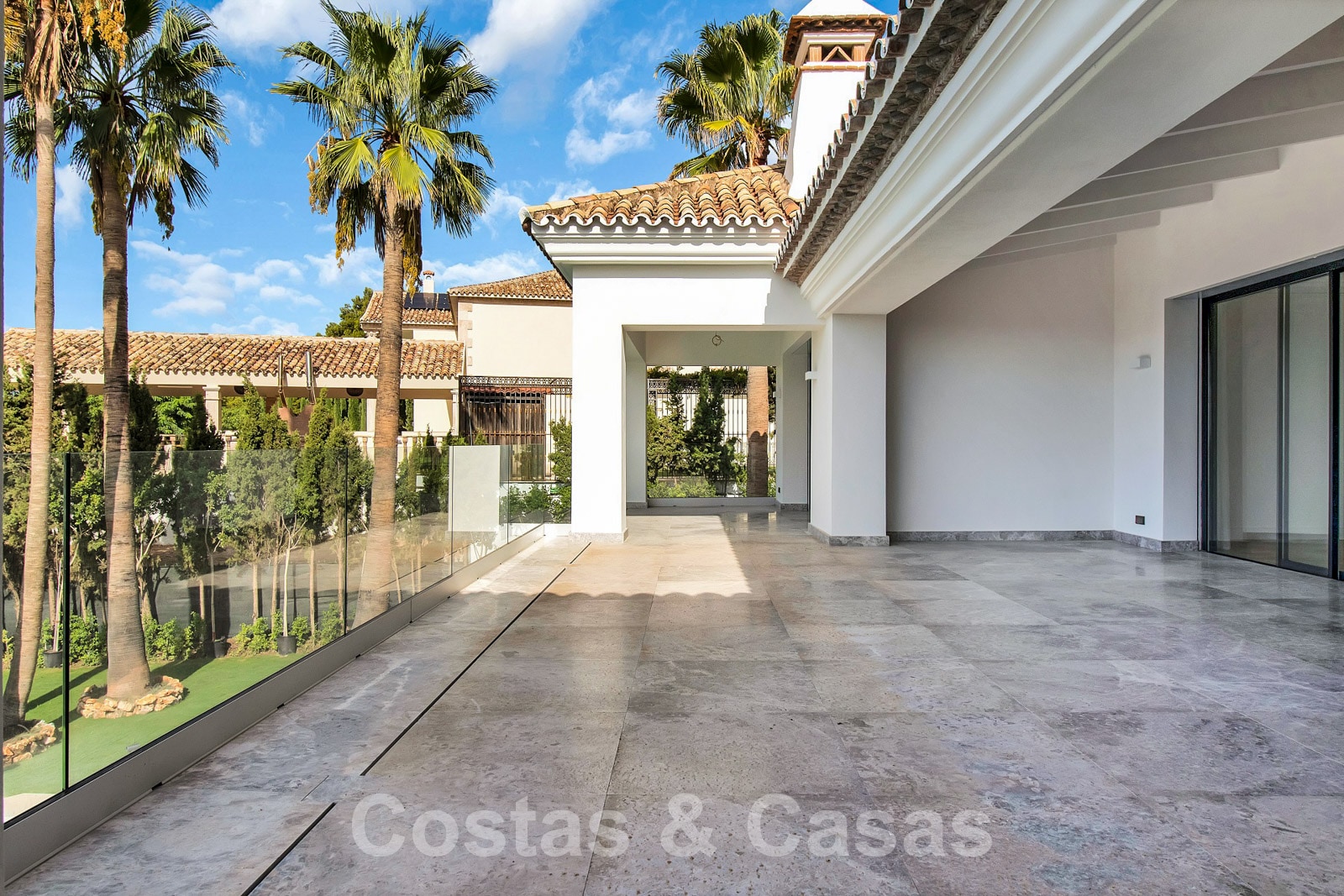 Espaciosa villa de arquitectura clásica andaluza mezclada con un encanto chic contemporáneo. La villa crea un equilibrio óptimo entre lujo y confort. Utilizando materiales de altísima calidad con especial atención a cada detalle. Gran entrada cubierta. Amplio espacio habitable con una distribución abierta. Cocina de diseño de planta abierta equipada con una isla y comedor. Un total de 6 dormitorios + alojamiento para el personal y 9 cuartos de baño. Gigantesca suite principal con acceso a la amplia terraza. Las altas ventanas correderas con perfiles empotrados proporcionan una transición perfecta y también generan luz natural adicional. Suelos de baldosas de calidad y parque en los dormitorios. Un espacio adicional de la casa está dedicado a la diversión y el relax con una sala de juegos con salón de TV, sauna, baño turco, bodega y zona de biblioteca.