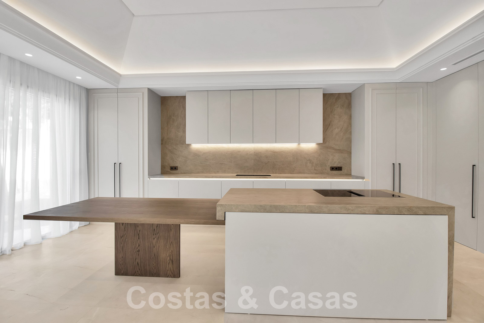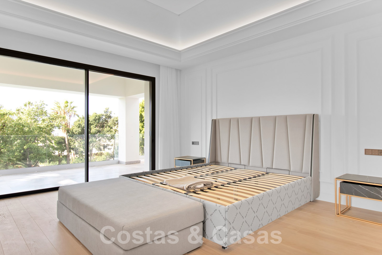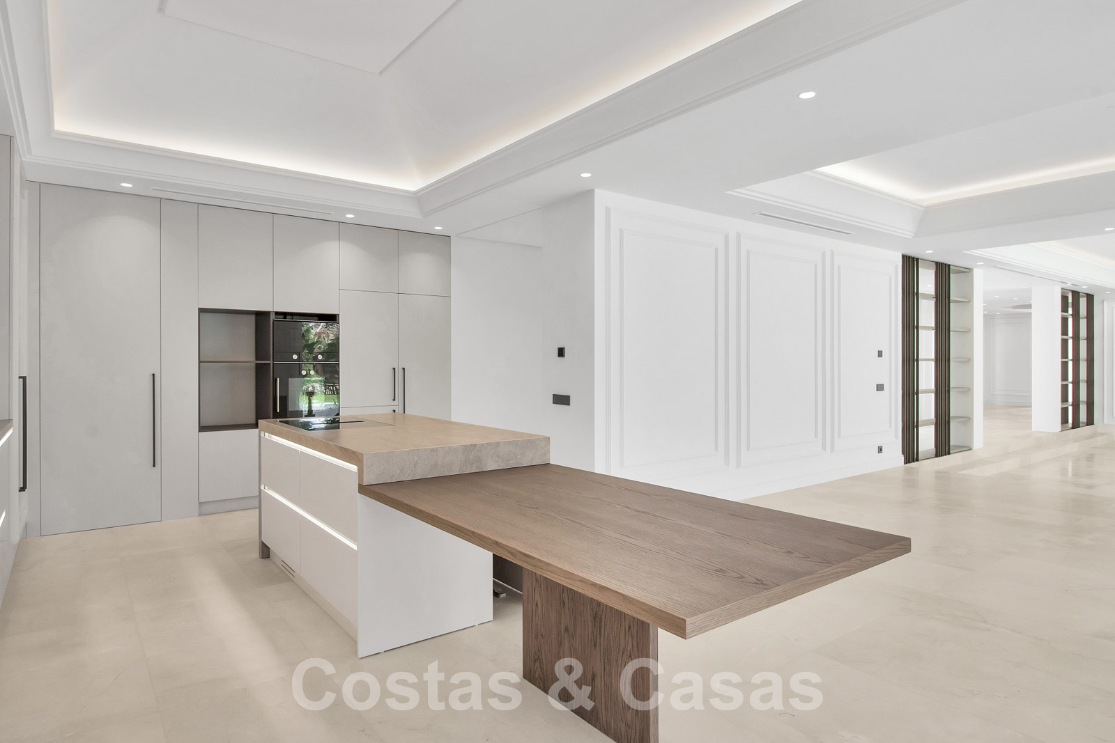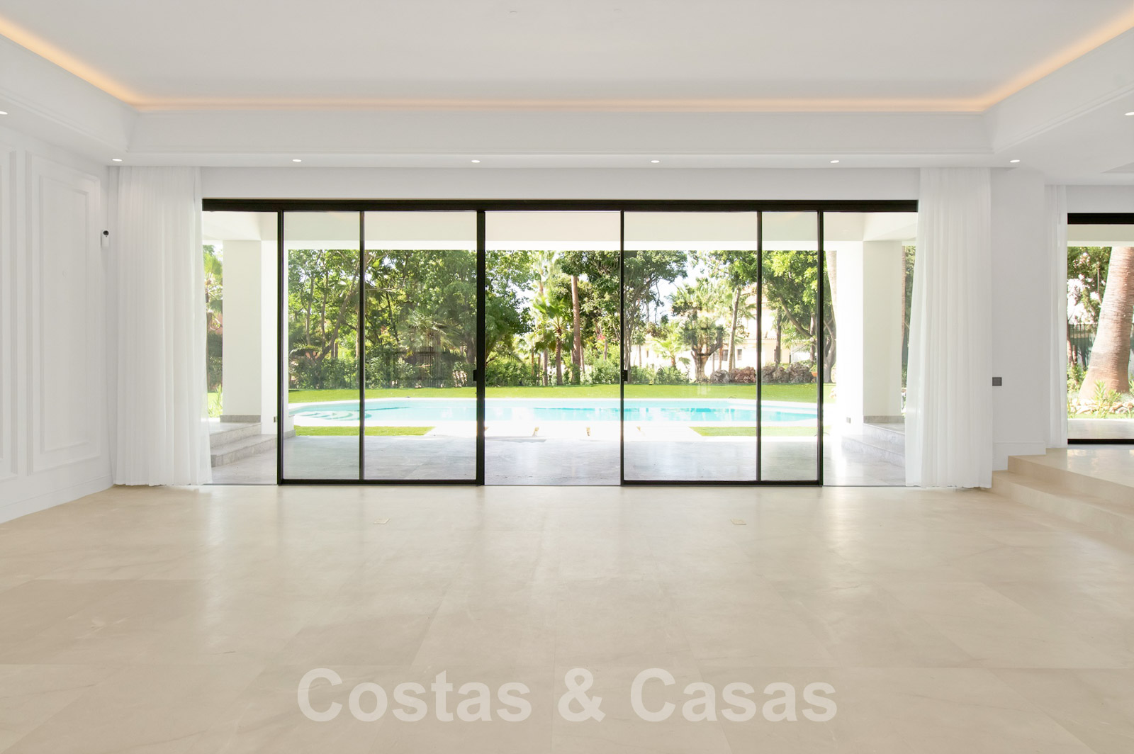 Espaciosa villa de arquitectura clásica andaluza mezclada con un encanto chic contemporáneo. La villa crea un equilibrio óptimo entre lujo y confort. Utilizando materiales de altísima calidad con especial atención a cada detalle. Gran entrada cubierta. Amplio espacio habitable con una distribución abierta. Cocina de diseño de planta abierta equipada con una isla y comedor. Un total de 6 dormitorios + alojamiento para el personal y 9 cuartos de baño. Gigantesca suite principal con acceso a la amplia terraza. Las altas ventanas correderas con perfiles empotrados proporcionan una transición perfecta y también generan luz natural adicional. Suelos de baldosas de calidad y parque en los dormitorios. Un espacio adicional de la casa está dedicado a la diversión y el relax con una sala de juegos con salón de TV, sauna, baño turco, bodega y zona de biblioteca.
