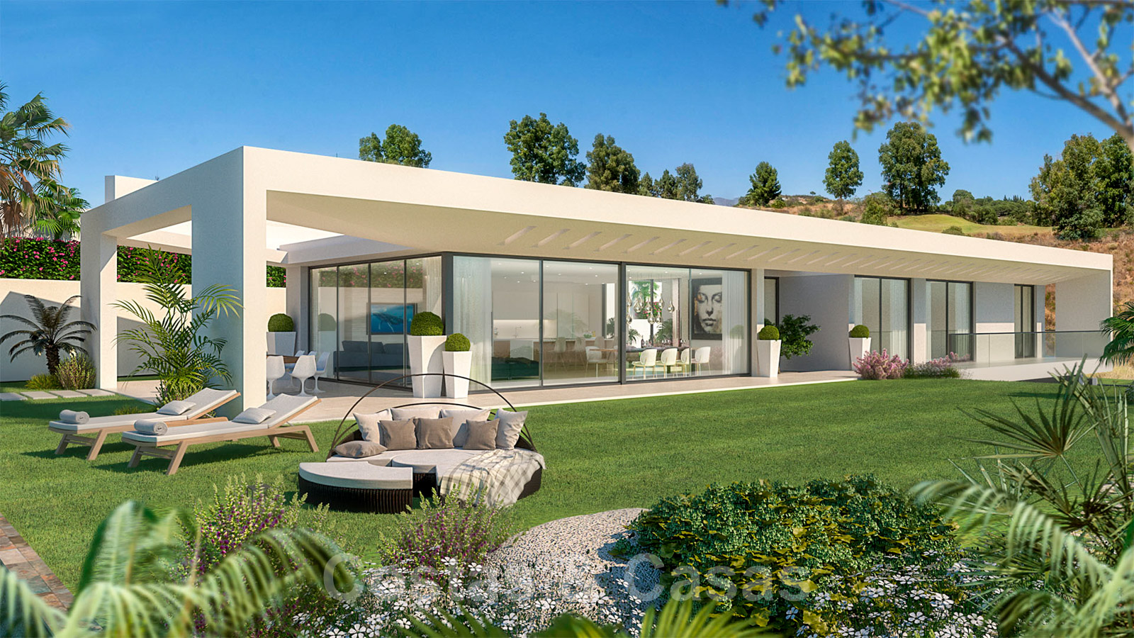 Ventanas correderas de suelo a techo que crean una transición perfecta entre el interior y el exterior.